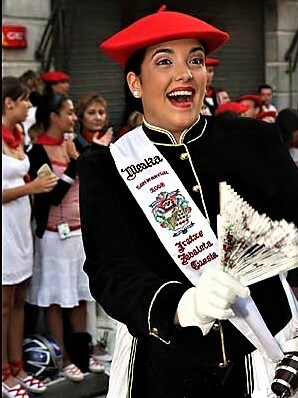 Año 2009. Miriam Barjacoba Murua. En la elección de Cantinera de la Compañía Meaka del Alarde de San Marcial de Irún en el año 2009. fuente archivo