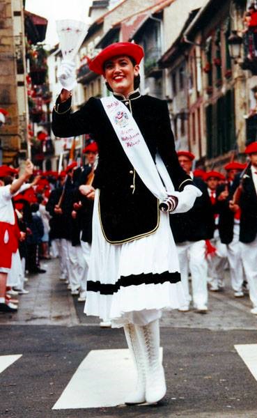 Año 1998. Alazne Urtizberea Peluaga. En la elección de Cantinera de la Compañía Meaka del Alarde de San Marcial de Irún en 1998 fuente Irungo Alardea
