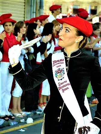 Año 2005. Edurne Petrikorena Simón. Cantinera de la Compañía Meaka del Alarde de San Marcial de Irún en esta bonita foto desfilando en el año 2005. fuente Edurne PetriKorena