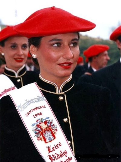 Año 1998. Leire Hidalgo Mardones. En la elección de Cantinera de la Tamborrada del Alarde de San Marcial de Irún en 1998 fuente Irungo Alardea