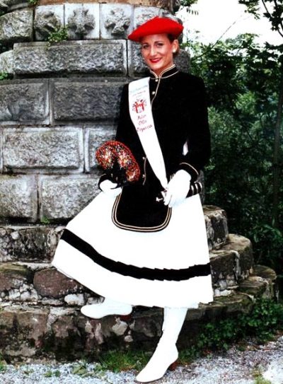 Año 1997. Julia Ollo Esparcia. En la elección de Cantinera de la Tamborrada del Alarde de San Marcial de Irún 1997 fuente Irungo Alardea