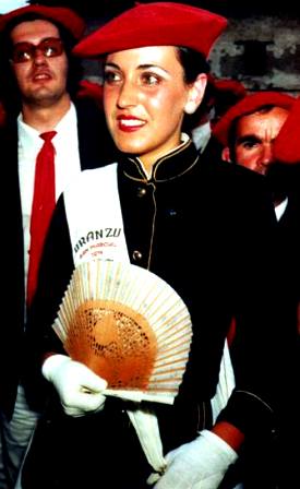 Año 1965. Concha Berridi. Fue Cantinera de la Compañía Uranzu, del Alarde de San Marcial de Irún, en el año 1965. fuente archivo