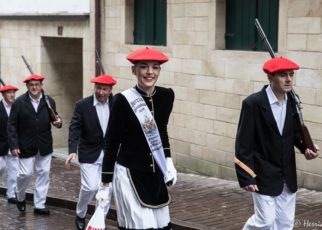 Año 2024. Libe Sorondo Sunsundegi. Cantinera de la Compañía Akartegi del Alarde de Hondarribia imagen de felicidad en 2024 foto Eva Pascual