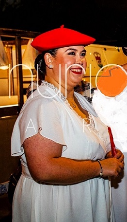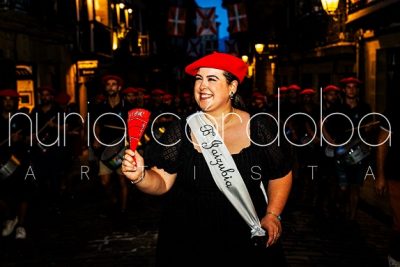 Año 2023. Eider Susperregi Eizmendi. Cantinera Compañía Jaizubia del Alarde de Hondarribia en los ensayos del año 2023. Nuria Cordoba