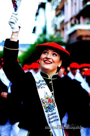 Año 2014. Amaiur Bandrés Oyarzabal. Cantinera de la Tamborrada del Alarde de Hondarribia, saludando en el año 2014. foto Marina Aguinagalde