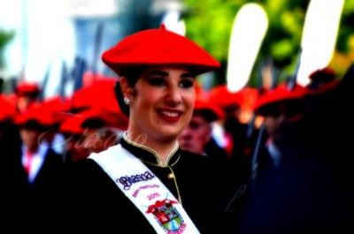 Año 2015. Naroa Etxeberria Muñoa. Cantinera de la Compañía Bidasoa del Alarde de San Marcial de Irún, en la Revista de Armas del año 2015. foto Maialen Cueto