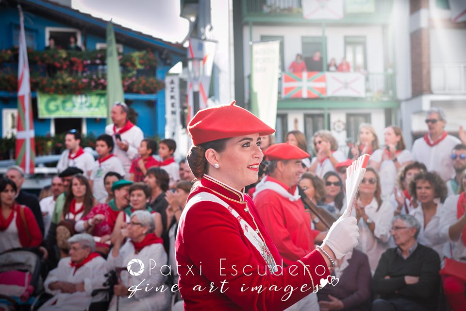 La Cantinera de la Compañía Done Pedro Itsas Gizonen Kofradia, Nagore Lazkanotegi. Desfilando por la Marina. Fotografía de Patxi Escudero. Año 2019