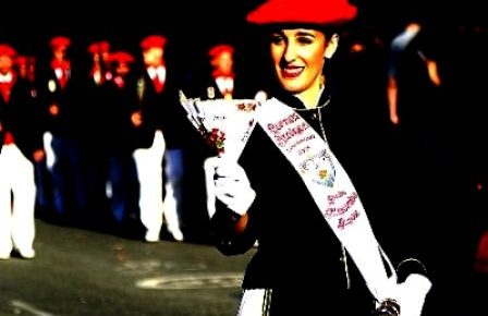La primera fila de parches de la Compañía Buenos Amigos bajando hacia la Iglesia. Su cantinera es Marta Barandiarán Diez. Año 2010.