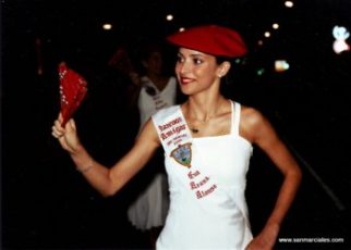 La cantinera de la Compañía de Ventas, Ana Egiazabal, un rato antes de que la vayan a buscar la mañana del día 30. Todo empieza ya…Alarde 2008.