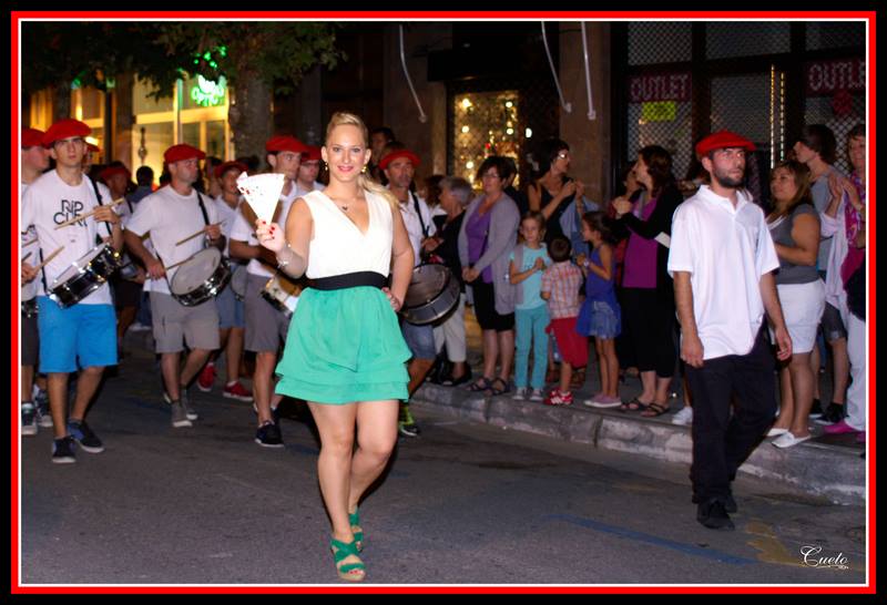 La Cantinera de la Compañía Kosta, Ainara Garmendia Olaskoaga. Ensayando por la Marina el día 5. Fotografía de Maialen Cueto. Año 2013