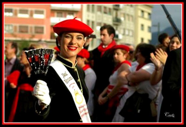 La Cantinde la era Compañía Real Unión. Juncal Martínez. Un primer plano desfilando delante de Aguirre. Fotografía de Maialen Cueto. Año 2013.