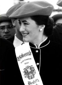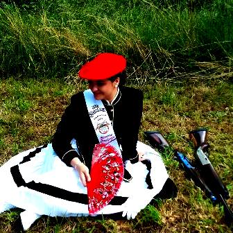 Año 2016. Edurne Aranburu Iruretagoiena. Cantinera de la Compñía Ama Shantalen del Alarde de San Marcial de Irún,en el campo en 2016.