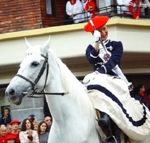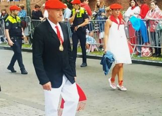 Año 2005. Edurne Petrikorena Simón. Cantinera de la Compañía Meaka del Alarde de San Marcial de Irún en esta bonita foto desfilando en el año 2005.