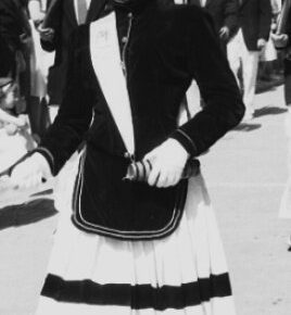 Año 2025. Eider Zuzaya Pagola. Cantinera de la Compañía Olaberria del Alarde de San Marcial de Irún con abanico en 2025