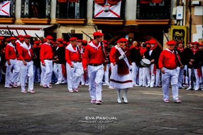 La entrada del Alarde en la Plaza de Armas es uno de los momentos más señalados del día 8 de septiembre. Las compañías entran y forman en sus lugares tradicionales realizándose las descargas de ordenanza.