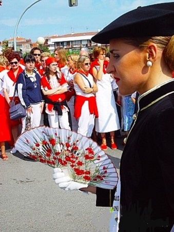 Año 2002. Elena Arbelaiz Goyogana. Cantinera de Done Pedro Itsas Gizonen Kofradia del Alarde de Hondarribia concentración 2002