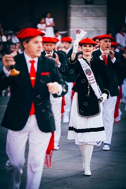 Año 2025. Elena Etxepare Buissan. Cantinera de la Tamborrada del Alarde de San Marcial de Irún en la plaza San Juan 2025