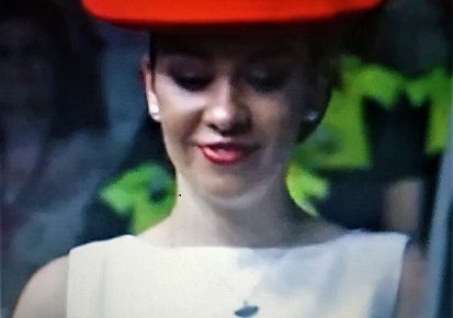 Año 2023. Elena González Alkain. Cantinera de la Compañía Gora Gazteak del Alarde de Hondarribia rodeada en la Plaza de Armas del 2023.