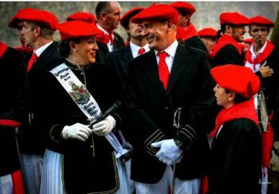 Año 2014. Enara Yarza Olaso. Cantinera de la Compañía Semisarga del Alarde de Hondarribia, con familia en el año 2014.