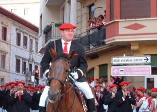 Año 2014. Enara Yarza Olaso. Cantinera de la Compañía Semisarga del Alarde de Hondarribia, en las murallas en el año 2014.