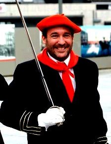Año 2004. Estibaliz Llanos Retegi. Cantinera de la Compañía Azken Portu del Alarde de San Marcial de Irún desfilando en 2004.
