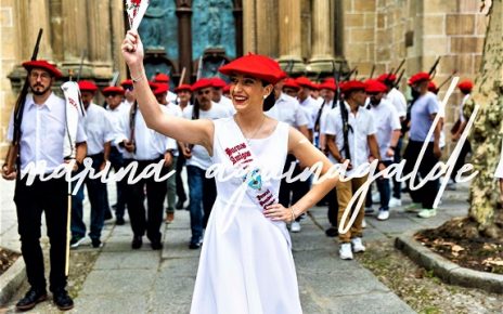 Año 2011. Estibaliz Prieto de la Fuente. Cantinera de la Compañía Real Unión del Alarde de San Marcial de Irún en la Revista de Armas del 2011.