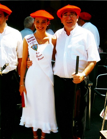 Año 2004. Eva Arana Alonso. Cantinera de la Compañía Buenos Amigos del Alarde de San Marcial de Irún en la Revista de Armas del año 2004.