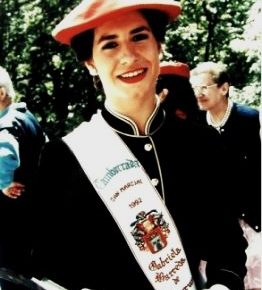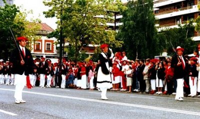 Año 1996. Eva Otazo Baez. Cantinera de la Compañía San Miguel del Alarde de San Marcial de Irún en San Juan 1996