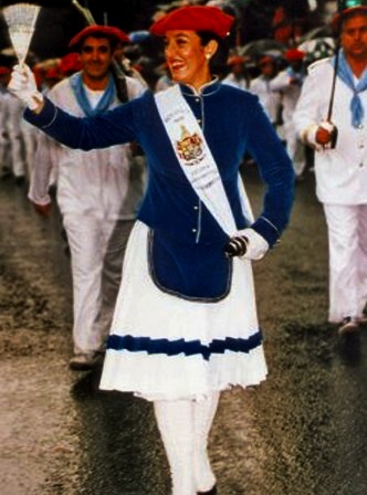 Año 1992. Fátima Lazkanotegi Egia. Fue Cantinera de la Compañía Beti Gazte, del Alarde de Hondarribia, en 1992.