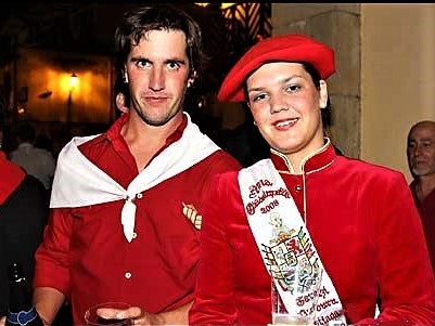 Año 2008. Garazi Lurburu Sistiaga. Cantinera de la Compañía Ama Guadalupekoa del Alarde de Hondarribia festejando tras el desfile del año 2008.