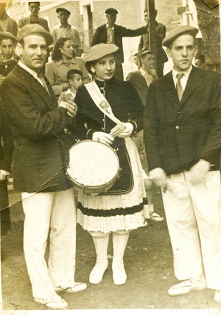 Año 1948. Gloria Larrañaga Aizpuru. Cantinera Banda de Música del Alarde de San Marcial de  Irún esperando