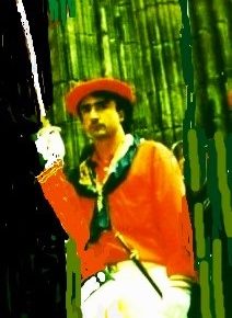 Año 2011´Gurutze Arruarte Arretxe. Cantinera de la Compañía Jaizubia del Alarde de Hondarribia saludando en el año 2011.