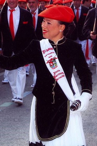 Año 2006. Idoia Martínez Larralde. Cantinera de la Compañía Bidasoa del Alarde de San Marcial de Irún en la Arrankada del año 2006.