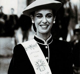 Año 2010. Iraia Larrauri Unda. Cantinera de la Compañía Behobia del Alarde de San Marcial de Irún camino de la Iglesia camino de la Iglesia en 2010.