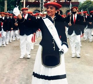 Año 2015. Irati San Sebastián Vázquez. Cantinera de la Compañía Azken Portu del Alarde de San Marcial de Irún, saludando en el año 2015.