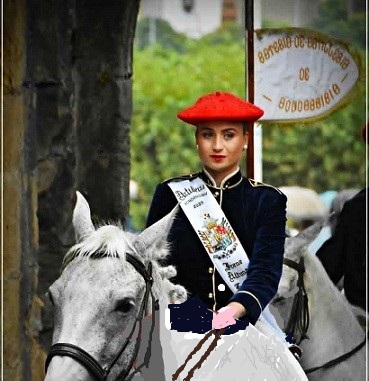 Año 2025. Irene Altuna Fachado. Cantinera de la Batería de Artillería del Alarde de Hondarribia en el año 2025