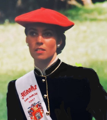 Año 1997. Irene Serrrano Irizar. Cantinera de la Compañía Meaka del Alarde de San Marcial de Irún en el monte en el año 1997