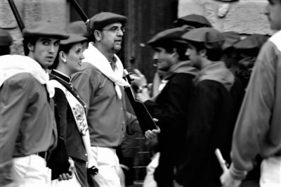 Año 2005. Ismene Tife Larrauri. Cantinera de la Compañía Ama Guadalupekoa del Alarde de Hondarribia desfilando en el año 2005