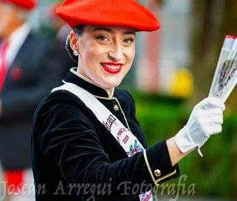 Año 2012. Iune García Luengo. Cantinera de la Compañía Belaskoenea del Alarde de San Marcial de Irún en la presentación de Cantineras del 2012.