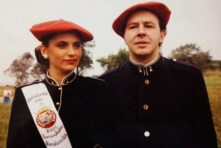 Año 2006. Izaskun Arbelaiz Alegría. Cantinera de la Tamborrada del Alarde de Hondarribia en la Calle Mayor en el año 2006.