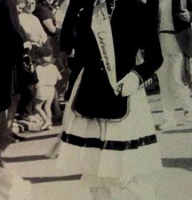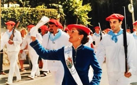 Año 2002. Izaskun Olazabal Irigoyen . Cantinera Compañía Semisarga del Alarde de Hondarribia en la Plaza de Armas 2002