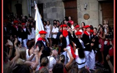 Año 2022. Janire Lecuona Sánchez. Cantinera de la Compañía Gora Arrantzale Gazteak del Alarde de Hondarribia en la Calle Mayor en 2022.