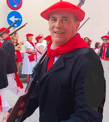 Año 2024. Jorge Vergara. Álferez ll de la Compañía San Miguel del Alarde de San Marcial de Irún en el año 2024
