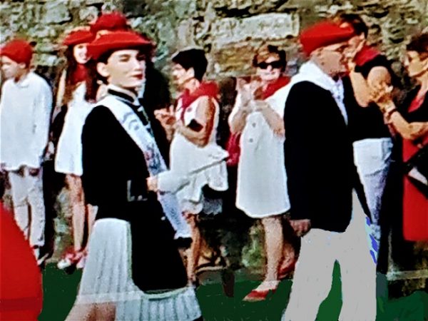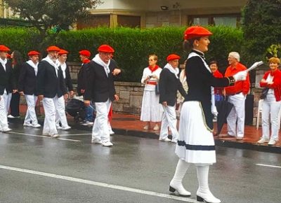 Año 2022. Juncal Zuzaya Gainza. Cantinera de la Tamborrada del Alarde de Hondarribia saludando en el año 2022.