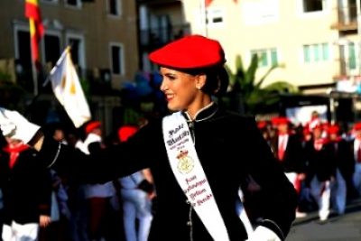 Año 2016. La Compañía Real Unión del Alarde de San Marcial de Irun. Con su Cantinera Iciar Gallastegui, en el paseo Colon, en el desfile de la tarde.