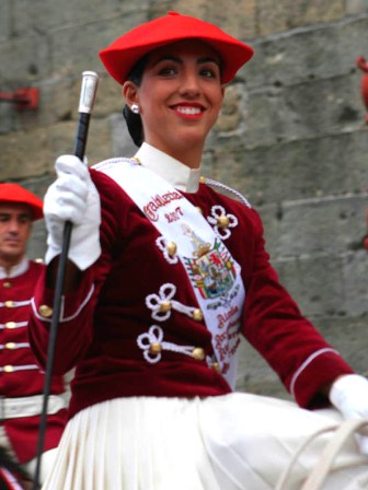 Año 2007. Aloña Aranburu Aizpitarte. Fue Cantinera de la Escolta de Caballería del Alarde de Hondarribia, en 2007.
