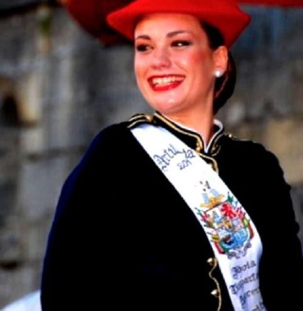 Año 2011. Idoia Chapartegui Arocena. Fue Cantinera de la Batería de Artillería del Alarde de Hondarribia, en 2011.