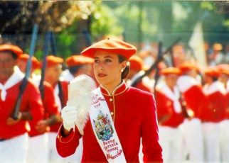 Año 1984. Mª José Alvarez Hernandez. Fue Cantinera de la Compañía Belaskoenea del Alarde de San Marcial de Irun, el año 1984.