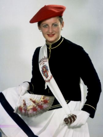 Año 1974. Mª Pilar Oyarbide Agirrebarrena. Fue Cantinera de la Compañía Meaka del Alarde de San Marcial de Irun, en 1974.