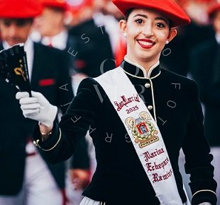 Año 1952. Mertxe Aizpiolea Amantegui. Fue Cantinera de la Compañía Meaka del Alarde de San Marcial de Irun en 1952.